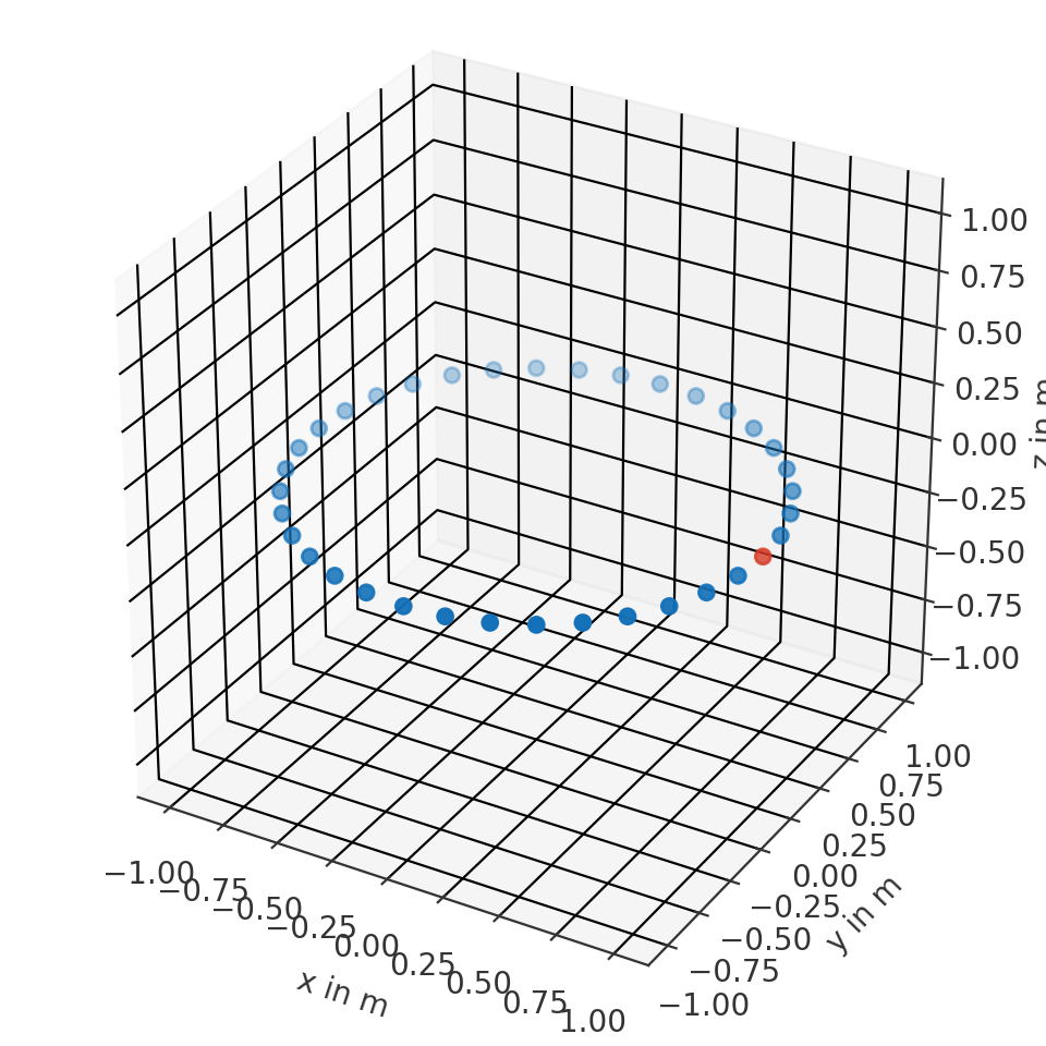 Different coordinate systems are frequently used in acoustics research and handling sampling points and different systems can be cumbersome. The Coordinates class was designed with this in mind. It stores coordinates in cartesian coordinates internally and can convert to all coordinate systems listed below. Additionally, the class can query and plot coordinates points. Addition and subtraction are supported with numbers and Coordinates objects, while multiplication and division are supported with numbers only. All arithmetic operations are performed element-wise on Cartesian coordinates using the appropriate operator. Functions for converting coordinates not stored in a Coordinates object are available for convenience. However, it is strongly recommended to use the Coordinates class for all conversions.