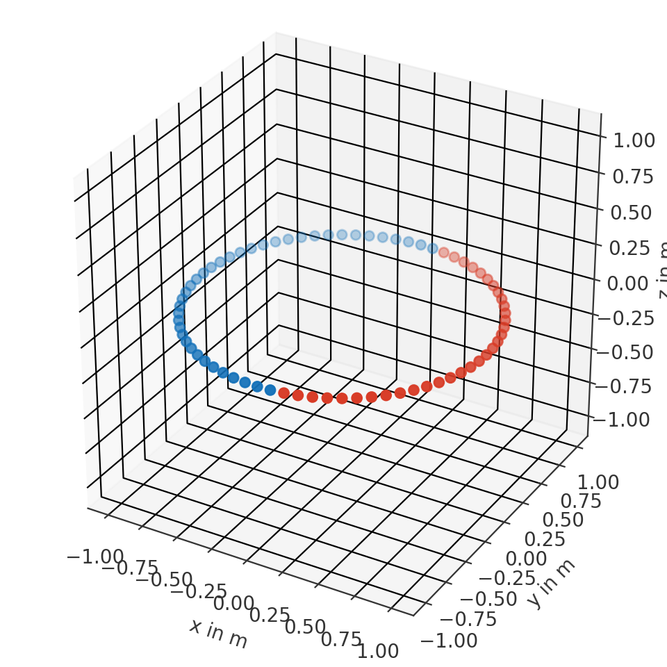 \[ \begin{align}\begin{aligned}x &= radius \cdot \sin(colatitude) \cdot \cos(azimuth),\\y &= radius \cdot \sin(colatitude) \cdot \sin(azimuth),\\z &= radius \cdot \cos(colatitude)\end{aligned}\end{align} \]\[ \begin{align}\begin{aligned}0 < azimuth < 2 \pi\\0 < colatitude < \pi\end{aligned}\end{align} \]- Parameters: