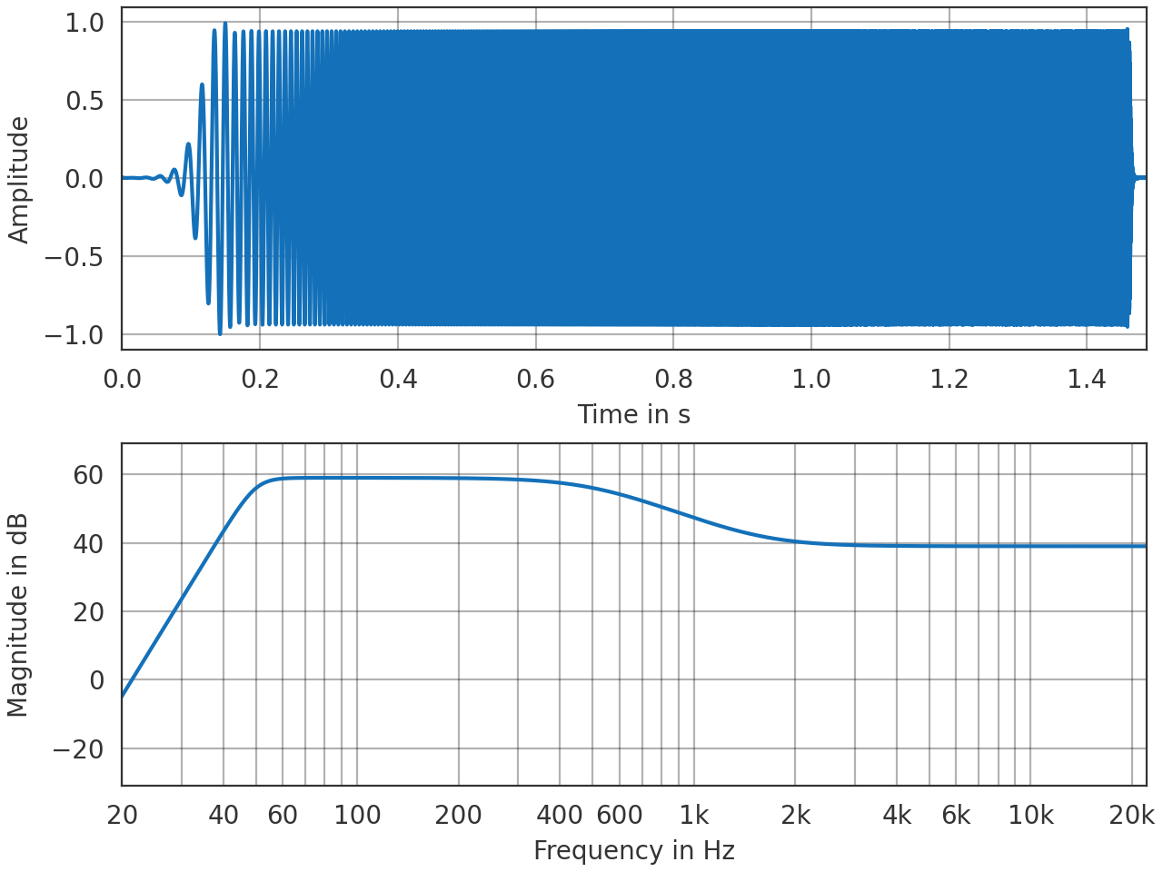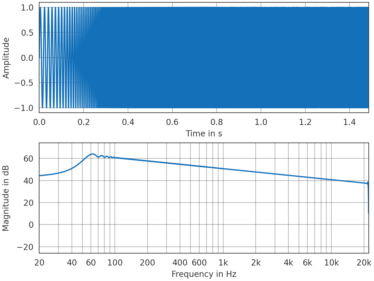 \[s(t) = \sin(2\pi f_\mathrm{low} L \left( e^{t/L} - 1 \right))\]
